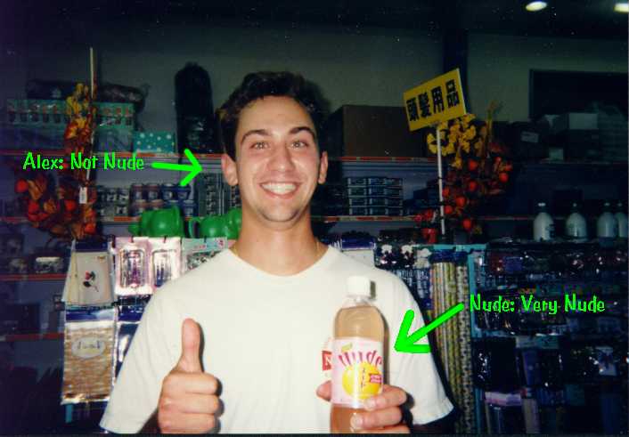 The title of this painting is "Alex, Nude" and it may be very misleading. You see, Alex isn't really nude, as the title may suggest. It is simply listing the subjects, mainly Alex, and the Nude. But Alex is by no means nude at all. In fact, he is fully dressed and not nude. Nor is he naked. This is taken in a dollar store.. ok, it isn't a dollar store. It's a hundred yen shop. And since the yen is approximately equal to a cent, the Americans tend to knock off the last two numbers and refer to prices in dollars. So this is essentially a dollar store. And they are great.