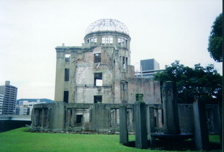 This building is the only standing reminder of the damage done to the city of Hiroshima. Just a few hundred feet above, the atomic bomb burst into a tremendous fireball which destroyed much of the city. This was one of the closest buildings to the blast. Today, the entire city has been rebuilt, save this. Related pictures: Eternal flame and arch Children's memorials